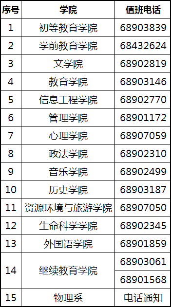 如果考试期间(9月18日8:00-12:00)您因某种原因无法完成考试,或有其他情况需要向学校说明或反映,您可以致电所在院系值班人员,具体联系方式如下: